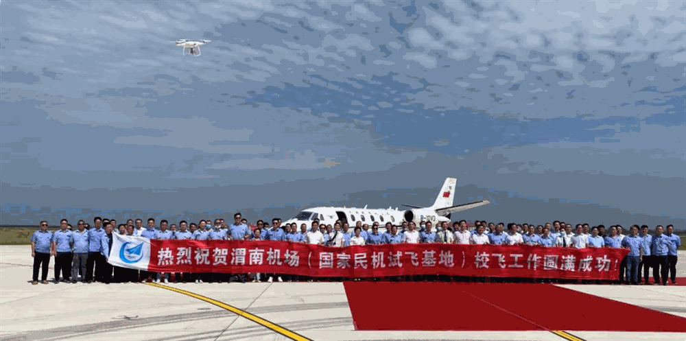 8月18日,中國民航校飛中心一架C-560飛機在渭南市蒲城縣國家民機試飛基地平穩落地,標志著國家民機試飛基地機場工程飛行校驗工作圓滿結束。