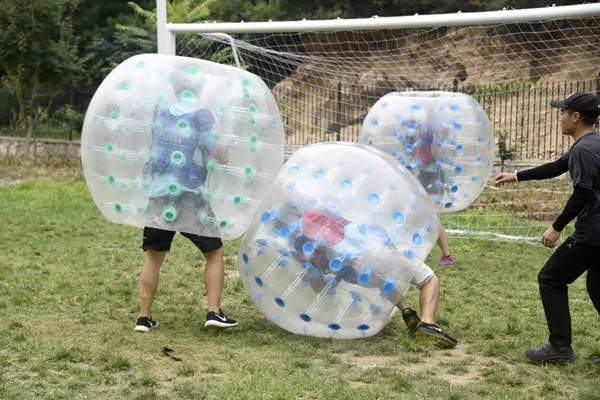隊員們利用有限資源,根據(jù)杠桿原理,制作一個羅馬炮架,發(fā)送水彈攻擊對方隊員。